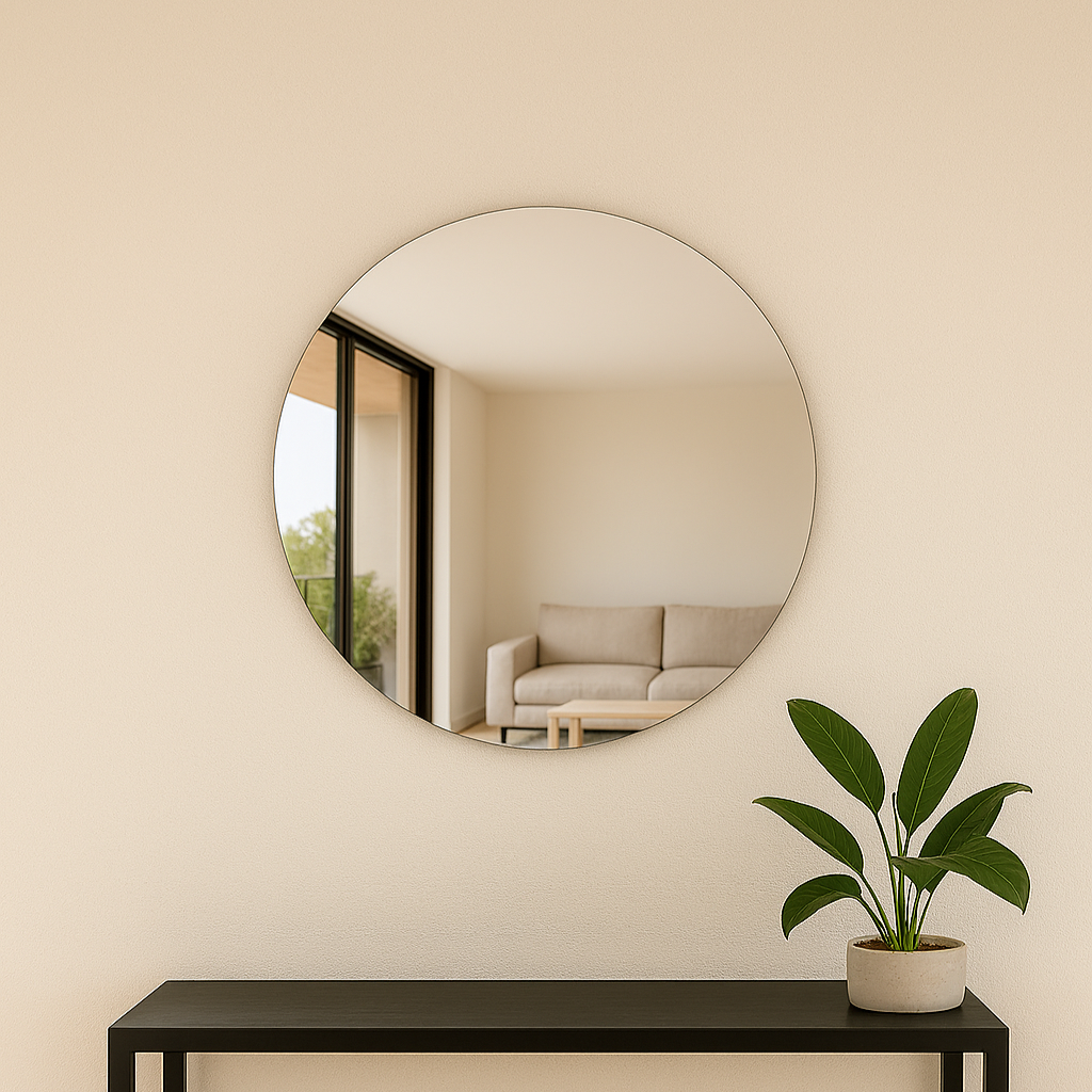 Gracias a su bastidor interno oculto, el espejo no queda pegado directamente al muro, generando un sutil efecto flotante que lo eleva visualmente. Perfecto para baños, entradas, dormitorios o espacios modernos que valoran los detalles discretos pero bien pensados.